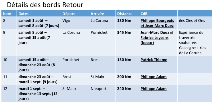 - Les bords de retours seront facilités étant en principe plus au portant.
